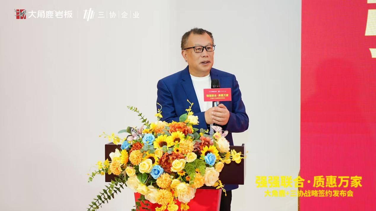 3月19日,以“强强结合·质惠万家”为从题的大角鹿岩板取三协建材计谋签约发布会正在佛山成功举行。